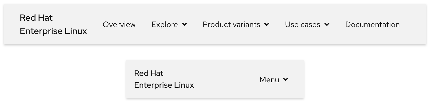Image of two stacked secondary navigations; one for large breakpoints and the other for small breakpoints
